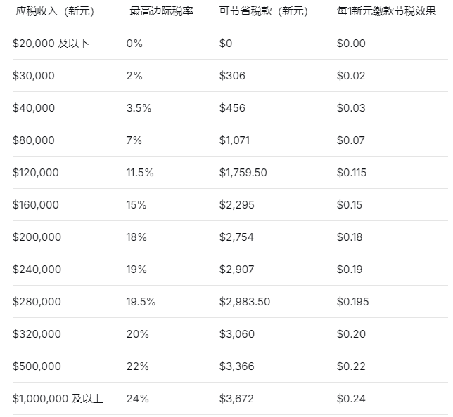 在新加坡,一个人能获得的节税金额取决于所处的个人所得税税率区间。