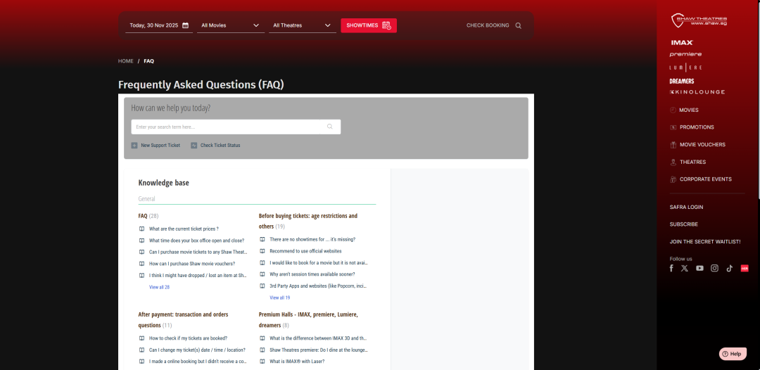 作为新加坡老牌影院,Shaw Theatres票价居城中低位。