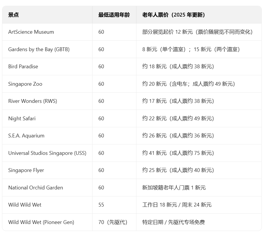 以下是2025年新加坡老年人折扣与福利