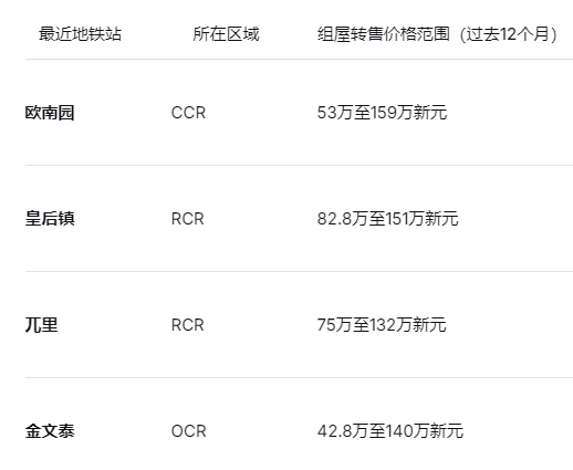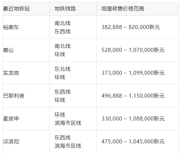 根据转售数据,靠近这些地铁换乘站的组屋单位似乎都能卖到相似的价格,至少在高端市场是如此。