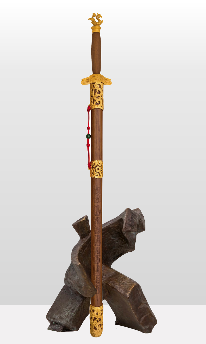 【湛盧】春秋时期的铸剑名匠—欧冶子曾为越王打造五把名剑,其中为首的「湛盧」宝剑,传因吴王阖闾无道,杀生以送死,滥杀无辜百姓为死去的女儿殉葬,宝剑竟自行出奔,「水行如楚」择主而事地到了楚王身边。在这些传说中,剑被人们认为具有降魔伏妖的能力,不但是礼器、法器,更是有自我意识的神器。