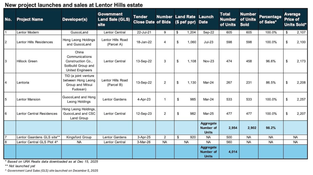截至目前,Lentor Hill Estate已推出六个住宅项目,共计2954个单位。根据已提交的印花税申请,98.2% 的单位已售出。