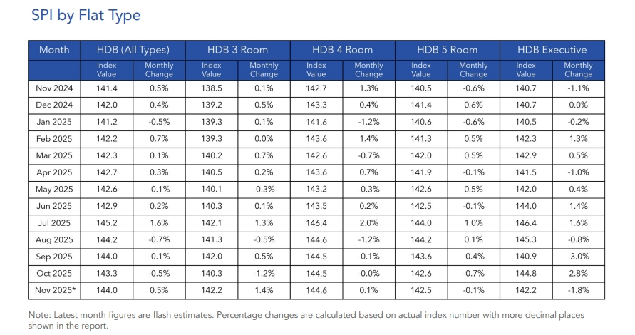 另一方面,虽然组屋转售市场并没有完全降温,但租金指数在2025年11月环比上涨0.5%,扭转了连续三个月的价格下跌趋势。