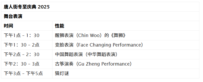 2025 年新加坡唐人街冬至庆典,将推出醒狮、迷人变脸、优雅中国舞蹈等一系列免费舞台表演,这些表演尽显艺术韵味与文化传承,持续塑造着唐人街的独特魅力。