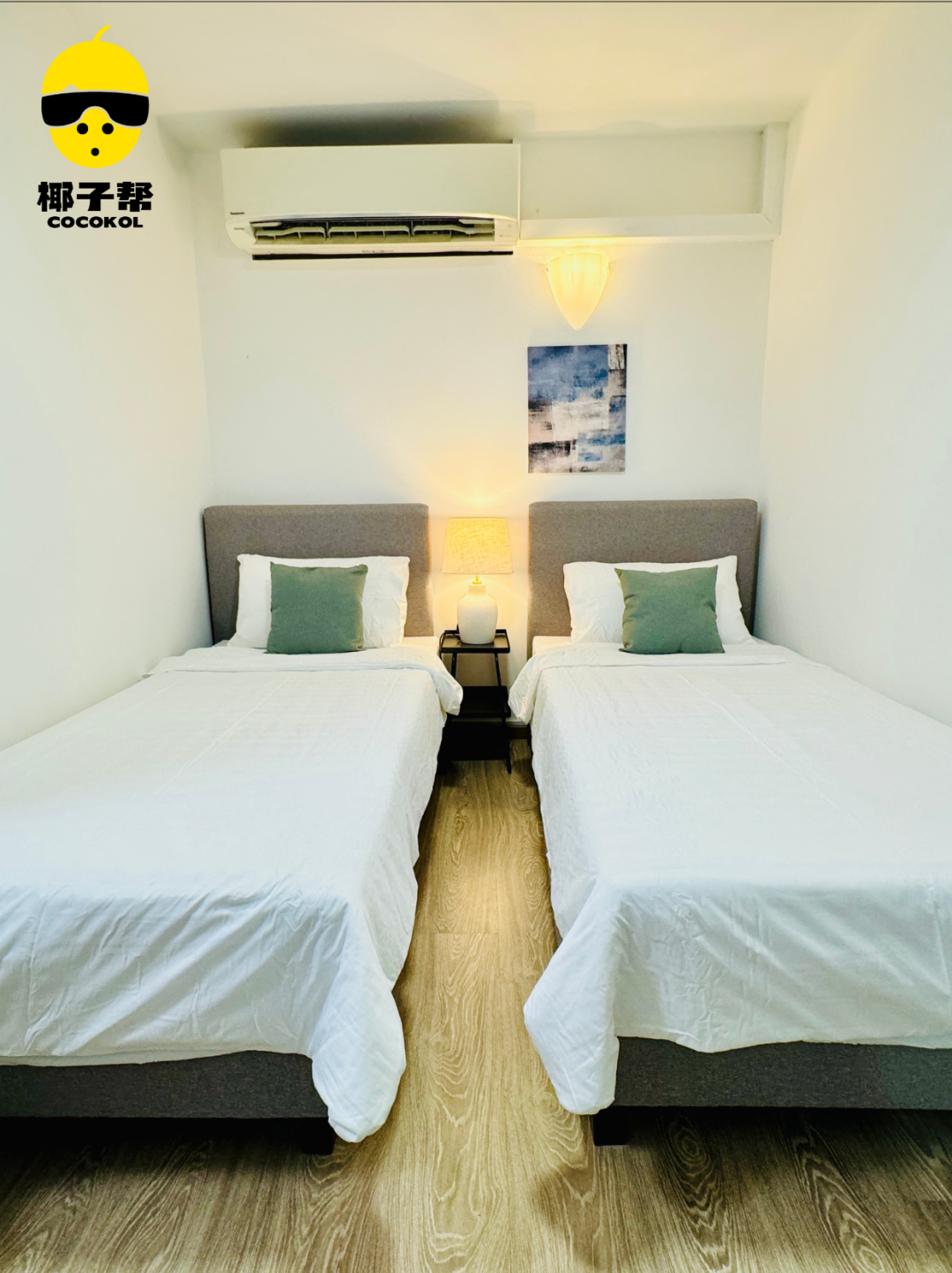 房间:Queen Size大床、空调、桌椅、衣柜,拎包入住