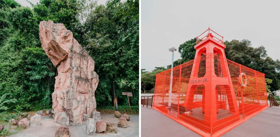 从 Berlayer Creek Boardwalk可看红树林与弹涂鱼, Bukit Chermin Boardwalk赏海景,保护区有新加坡唯一沿海岩石海岸。