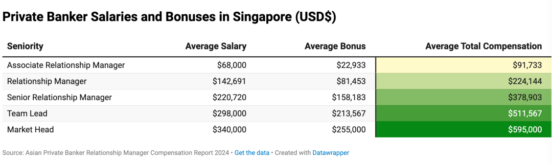 私人银行职员的平均薪资及花红范畴