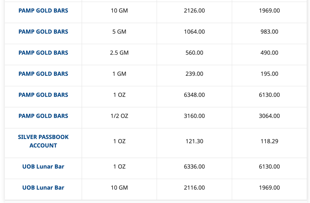 例如 大华银行(UOB) 就提供实物黄金和“黄金储蓄账户”等服务。