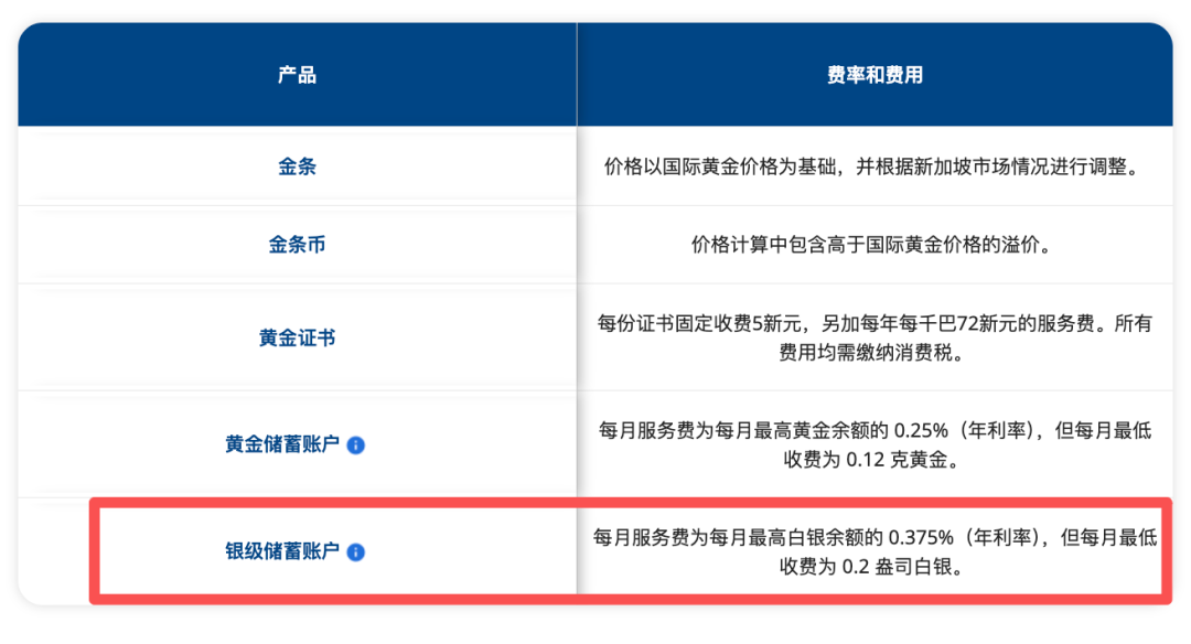在新加坡,华侨银行和新加坡大华银行目前都提供白银储蓄产品。