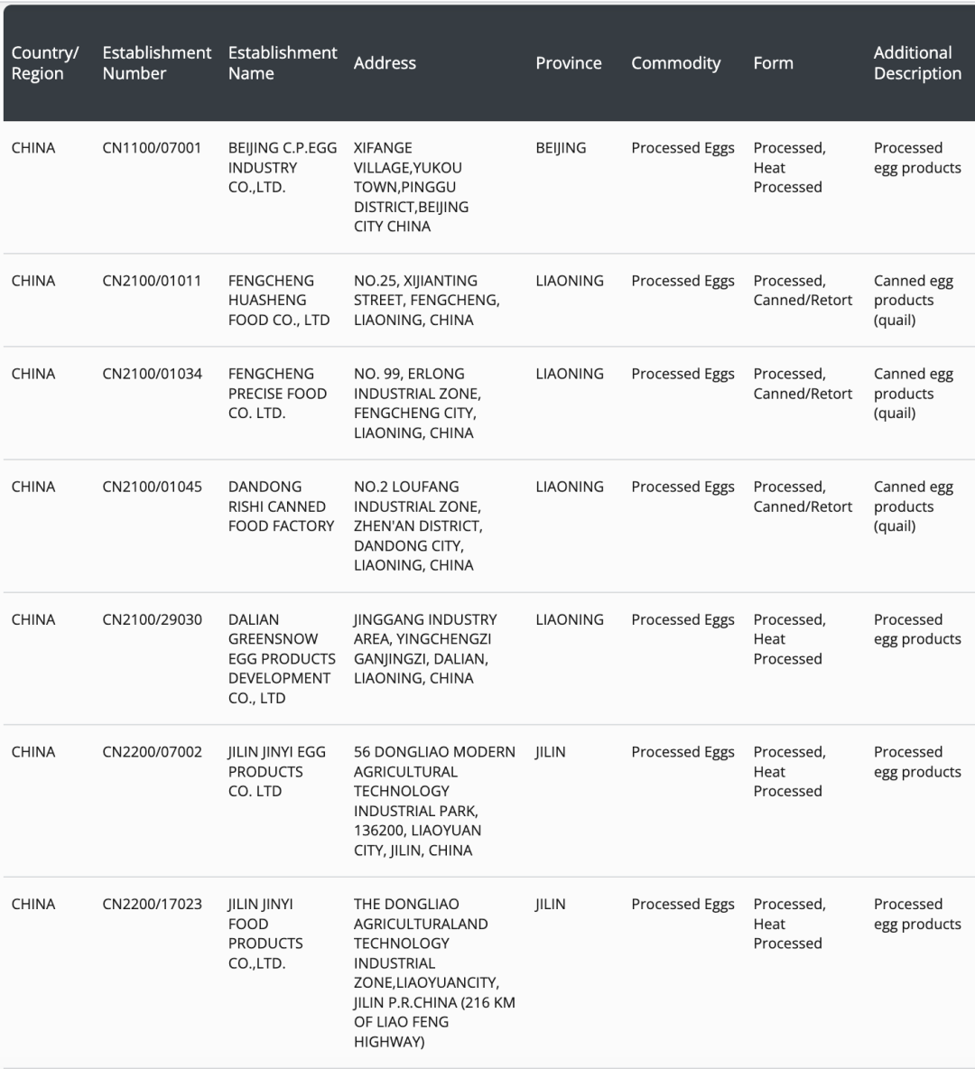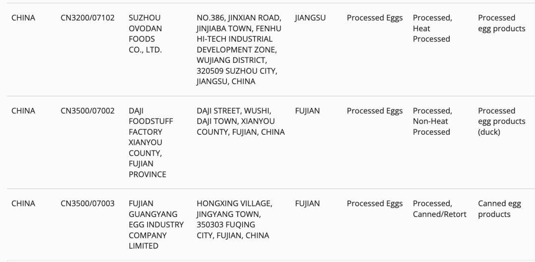 其中鸡蛋和蛋制品,累计有资质的企业只有32家。获批准进口省市包括北京、辽宁、吉林、江苏、福建、湖北、江西、广东等。