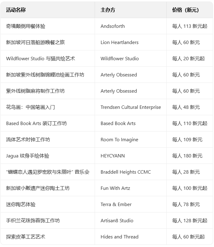 不仅能解锁美味时光,还能凭 SG Culture Pass 积分玩转奇幻用餐、河上日落巡游、与猫共绘艺术等多样活动,无需顾虑高开销,以这些暖心 “免费” 约会方式,让情侣专注相伴,共攒甜蜜美好回忆哦~