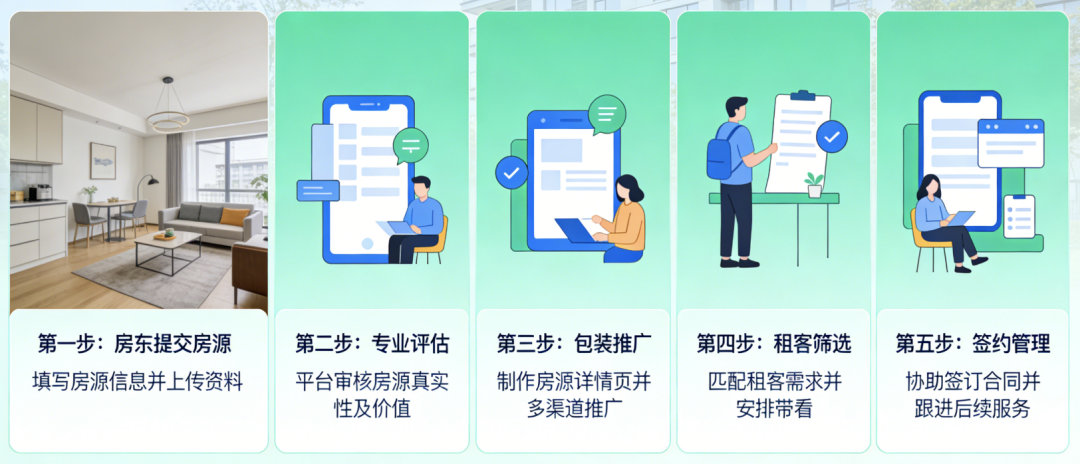 正如流程图所示,您只需提交房源,我们将完成从专业评估、包装推广到租客筛选、签约管理的全流程。我们的角色是您的独家资产运营官,核心目标只有一个:最大化您的净收益,并确保过程省心无忧。