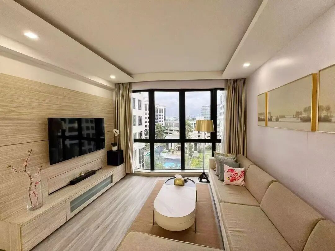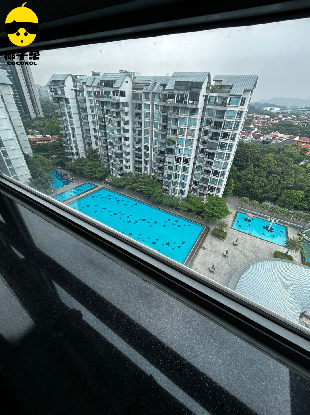 落地窗泳池景、每次换租换全新床垫、静音空调、干衣机、高速WiFi。