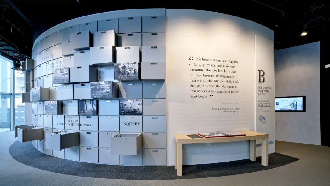 必看 1975 传统法庭模型还原旧貌,杨音挪用巨款案等焦点庭审重现超有代入感;模拟文件柜藏干货,15 起公益要案,带你读懂新加坡司法。