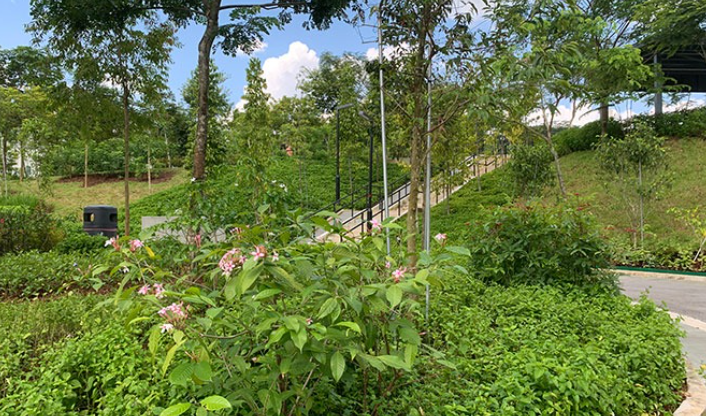 新加坡武吉甘柏公园依山而建,2021 年开放,集宠物乐园、儿童游乐场与山顶蝴蝶园于一体,多入口设计便捷,是居民赏景休闲、亲近自然的宁静好去处。