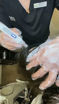 这一步真的舒服到不想结束!仪器轻贴头皮,温和的声波震动缓缓传来,搭配温热的精华慢慢渗透,没有丝毫异物感,只剩头皮逐渐放松的惬意。