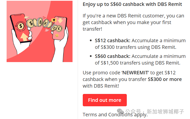 此外,针对首次使用DBS Remit的新用户,DBS官网也给出了汇款限时福利: