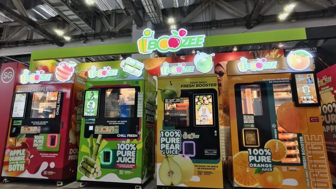 新加坡除 Ijooz 橙汁自动售货机外,Iboozee 等品牌还提供苹果、梨、甘蔗汁,价格 2.5-3 新元。