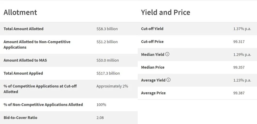 从中位数利率和截止收益率来看,这表明相当多的竞标利率设在1.23%至1.29%的范围内,这低于新加坡最佳6个月定期存款利率。