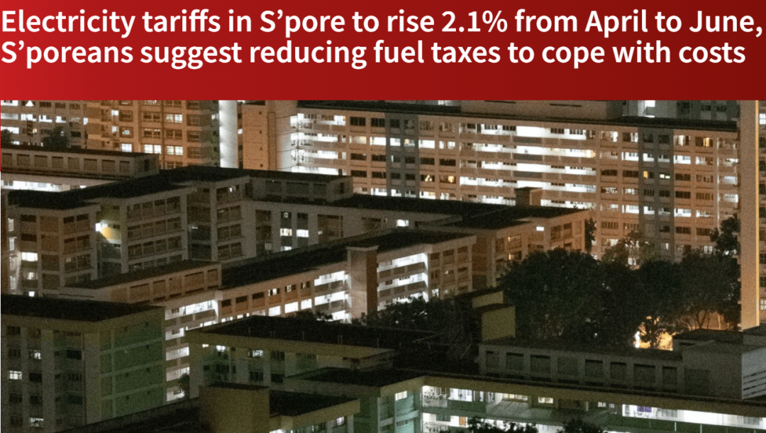 所以,当油价暴涨后,新加坡的电费也扛不住了。