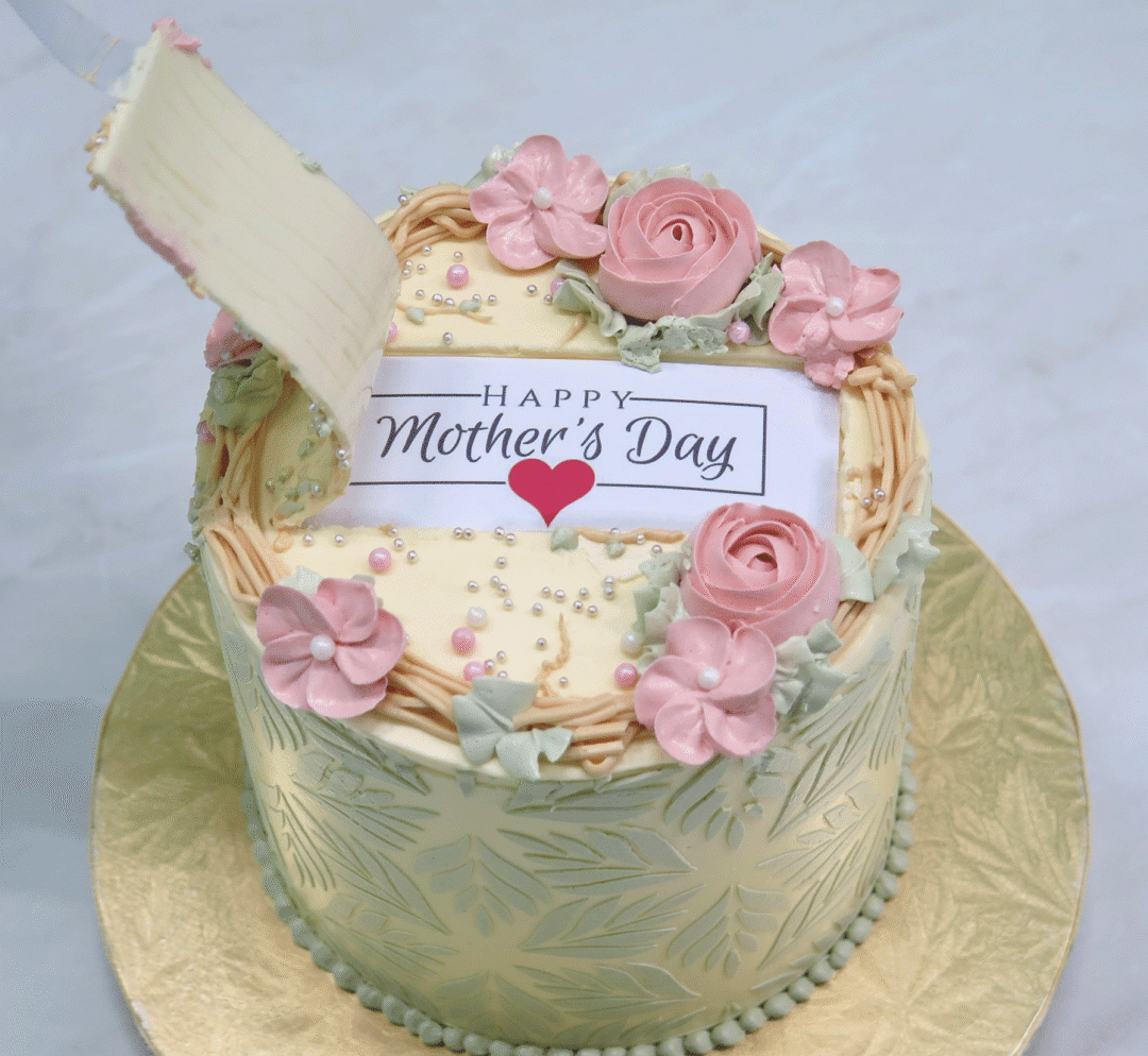 除了精致的花篮造型,店里还有自带仪式感,揭膜款式的蛋糕——膜上印着专属妈妈的甜蜜告白,简简单单却格外走心,把对妈妈的爱意都藏在这份甜甜的蛋糕里。