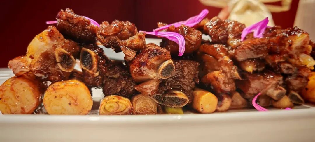 裹上浓郁诱人的糖色,甜咸交织的口感超入味!而且盘底铺满了香软的葱卷和绵密的山药,山药吸饱了排骨的鲜香料汁,入口面面的,带着淡淡的葱香,2-3人分享刚好,摆盘精致又美味~
