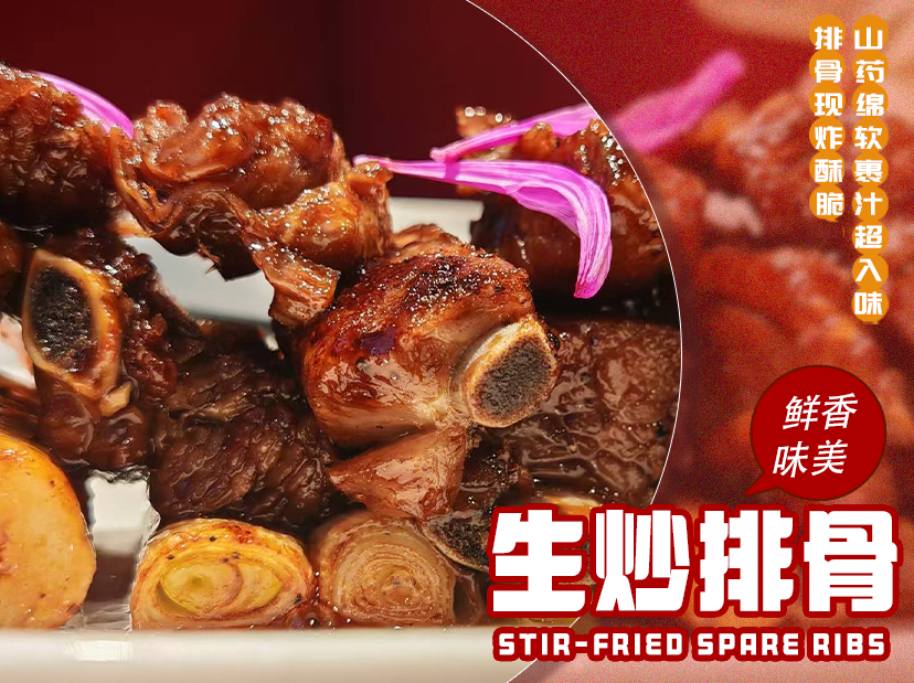 生炒排骨 这道菜绝对是桌桌必点的招牌!现点现炸的排骨,外皮炸得金黄酥脆,轻轻一咬就能听到“咔嚓”的声响,内里的肉质却鲜嫩多汁。
