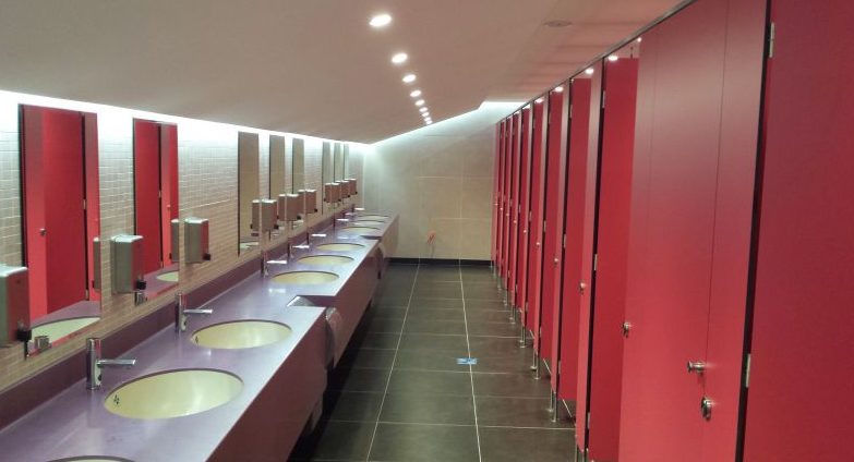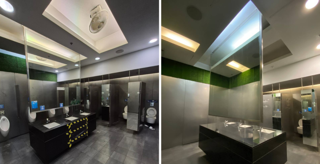 Orchard MRT的厕所以粉红色调打破常规,水槽多、人流量大却干净,紧邻 ION Orchard,可选择更优质的替代设施。
