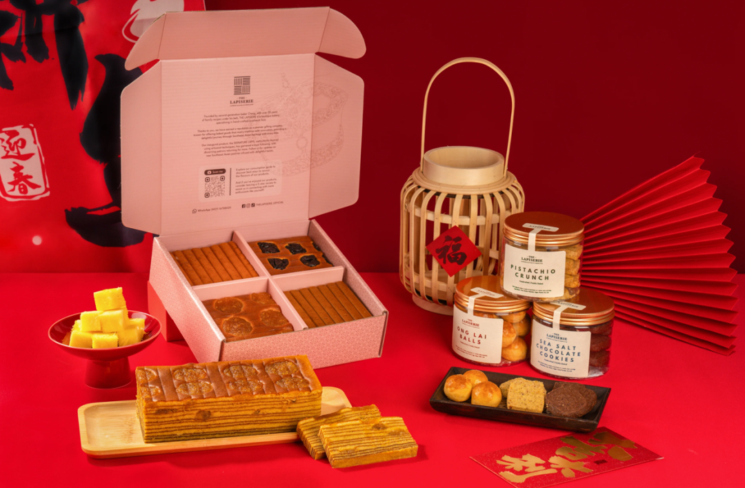 新山 THE LAPISERIE 由资深烘焙师创立,主打手工千层糕、特色饼干,用料优质工艺地道,新马圈粉无数,2026 春节推多款年礼,线下门店 + 线上配送,满额还赠礼。
