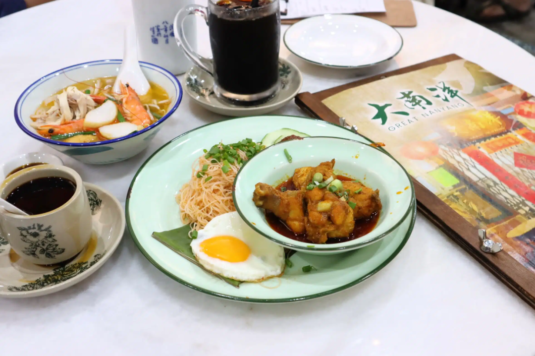 JUwei Old Nanyang Coffee Shop 位于 Clarke Quay,怀旧潮流兼具,设专属早、夜宵菜单,营业至深夜,提供多款南洋经典面食、沙爹、甜品与特色咖啡,适配早市与夜宵。