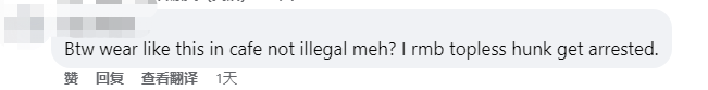 也有网友表示,在咖啡厅这种穿着是不被允许的,之前有个小哥因为没有穿上衣还被逮捕了。甚至有网友@新加坡文化社区青年部(新加坡的政府机构),要求调查这家店。