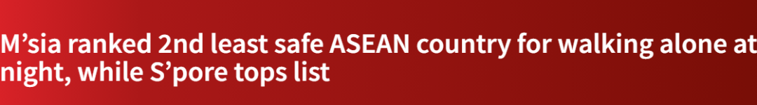研究结果显示,在“夜间独自步行安全感”这一指标上,马来西亚在东盟地区(亚细安)只能排名倒数第二,仅领先于近些年陷入动荡的缅甸。这组数据意味着,当夜幕降临,多数马来西亚人对于独自出门散步这件事,心里是“没底”的。