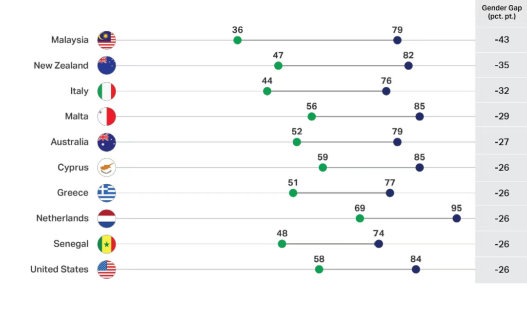 报告特别指出,马来西亚在夜间安全感上存在着全球最为悬殊的性别差异。高达79%的马来西亚男性认为夜间独行是安全的,但当视角转向女性时,这一数字骤然暴跌至36%。