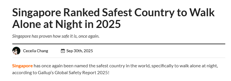 熟悉新加坡的小伙伴都知道,新加坡的安全程度不仅冠绝东南亚,甚至在全球都榜上有名!曾经12次登顶过全球最安全国家!