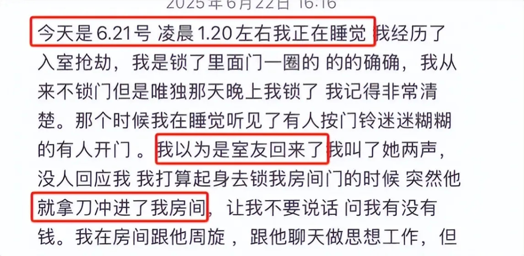 今年6月,还有一位居住在马来亚大学附近高档住宅区的女留学生,同样家中被歹徒侵入。歹徒先是控制住受害者想要侵犯她,遭到反抗后甚至还想带她吸毒!