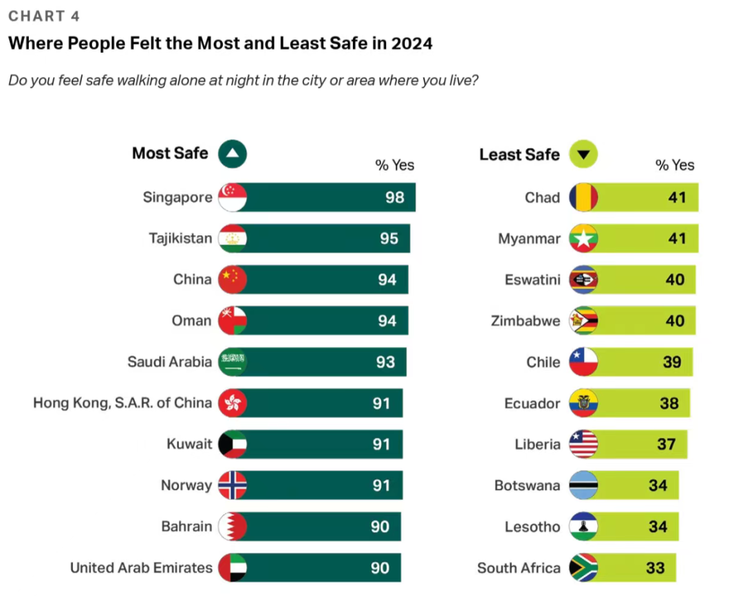 正如盖洛普首席执行官所言:“这种感觉不仅仅是对于危险的反应,更是实现持久和平的基石。人们感到安全的程度,不仅仅是和平的反映,它本身就是和平得以实现的先决条件。”