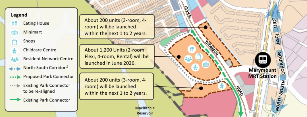 除了上述这个项目外,汤申路上段地区还计划推出另外两个BTO项目。它们将共同增加约420套组屋,包括130套3房式单位和290套4房式单位。这些项目都预计在未来两年内推出。