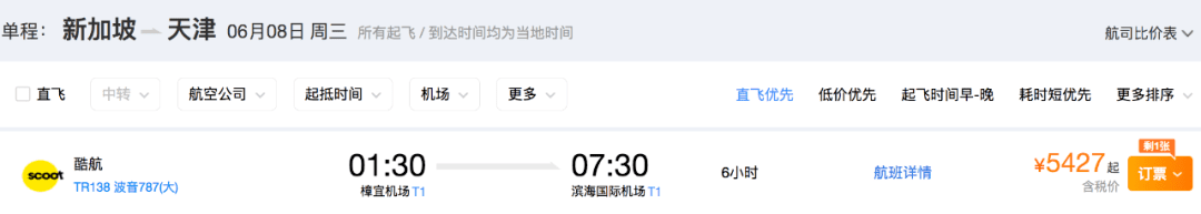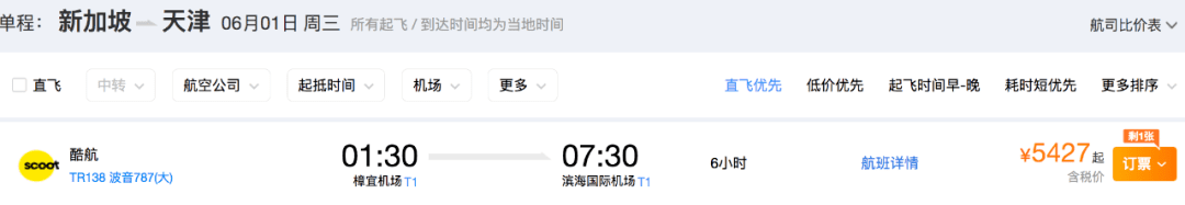 (!注意:6月低价机票余票不多,5日跟12日皆仅剩1张)