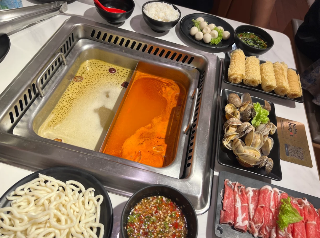 清真认证的HahaHotpot主打地道川味,招牌麻辣汤底鲜香够劲,搭配鱼籽丸、新西兰青口贝、牛胸肉片等食材,午餐自助价 35.90 新元起。