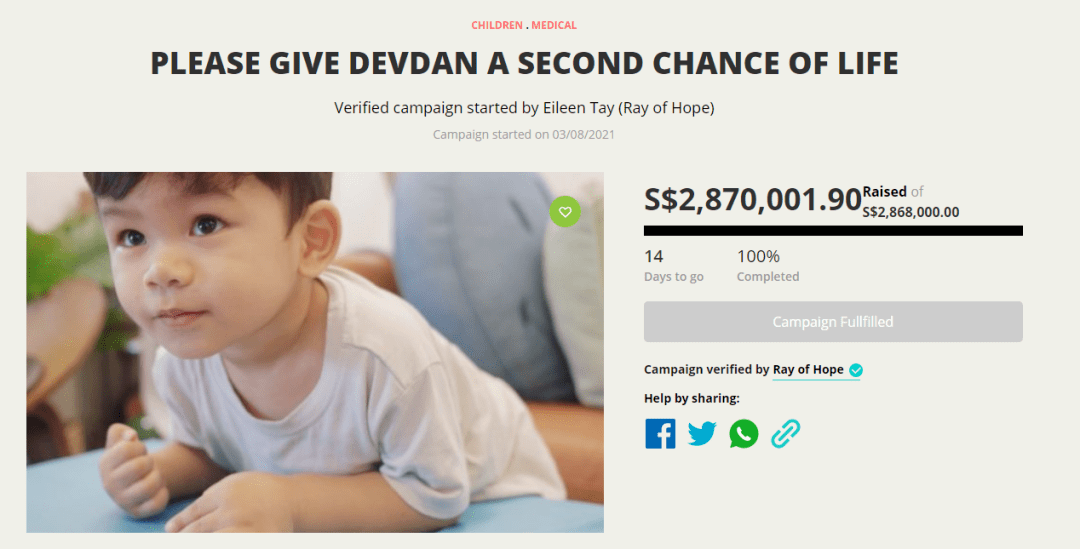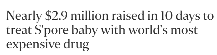 医生告知父母,这项治疗所需要的费用是286万新币,而且孩子必须要在2岁以前就接受治疗。