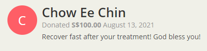 陈先生说,"希望之光 "将与NUH的财务团队合作,进行必要的支付,一旦资金转移,捐赠者将得到信息更新。