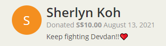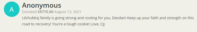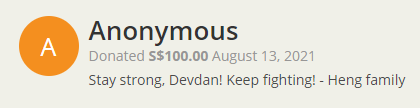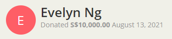 捐款额从几十到几万新元不等,还有很多人留下鼓励的话语。