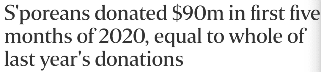 《新加坡人在2020年前5个月捐款9000万新币,等于去年一整年》