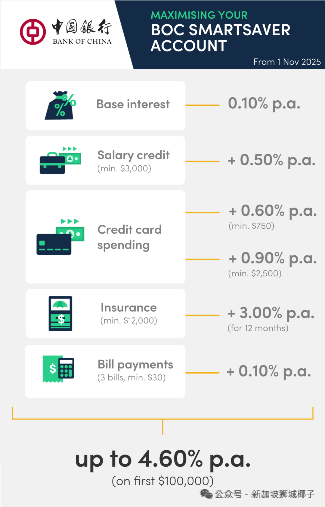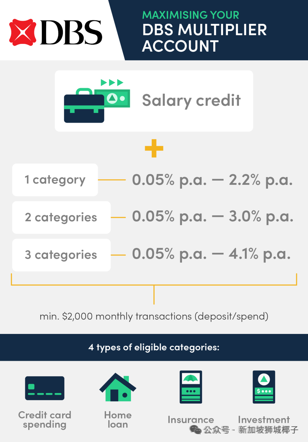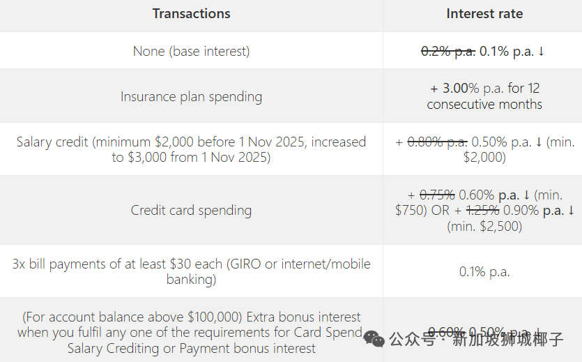 ①每月存入至少3000新币工资:+1.0(之前为1.5%)
