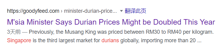 因为新加坡本地几乎不产榴莲