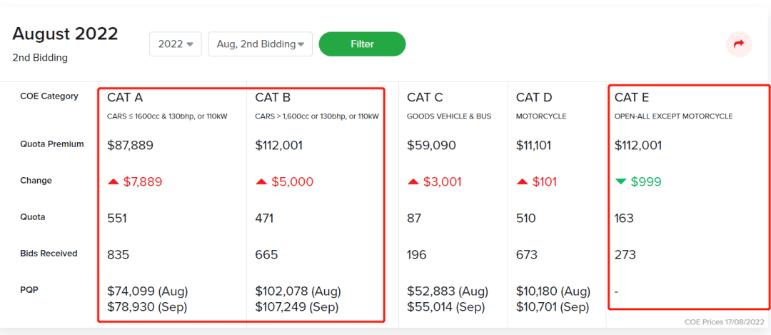 CAT C和D是货车、巴士、摩托车的拥车证价格,图源:motorist.sg