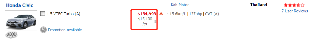 以本田思域为例,一家新加坡购车网站的报价就超过了16万新币!这钱要是换算成其他国家的货币,买宝马奔驰都问题不大了......