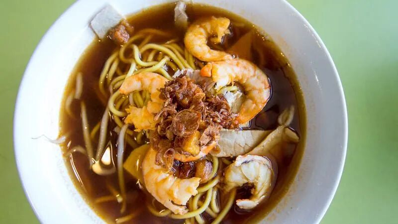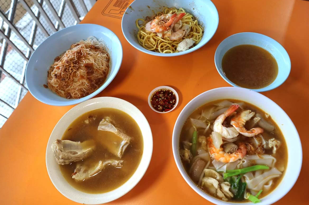 545 Whampoa Prawn Noodles(始于 1950 年代)常排长队,5 新元粿条配 4 只虾等食材,虾汤鲜浓,面条拌调料鲜香均衡,可加面、大虾等。