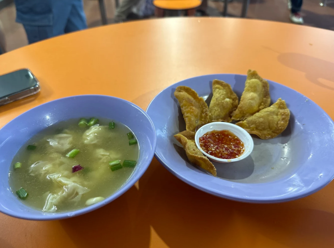 Tekka Centre 的Lim Kee Cooked Food 营业 20 多年,阿姨现包饺,售Chicken Feet Noodle等(4 新元起)及饺子汤 / 煎饺,4 新元Wanton Noodle Dumpling soup含炸云吞,汤浓面弹。