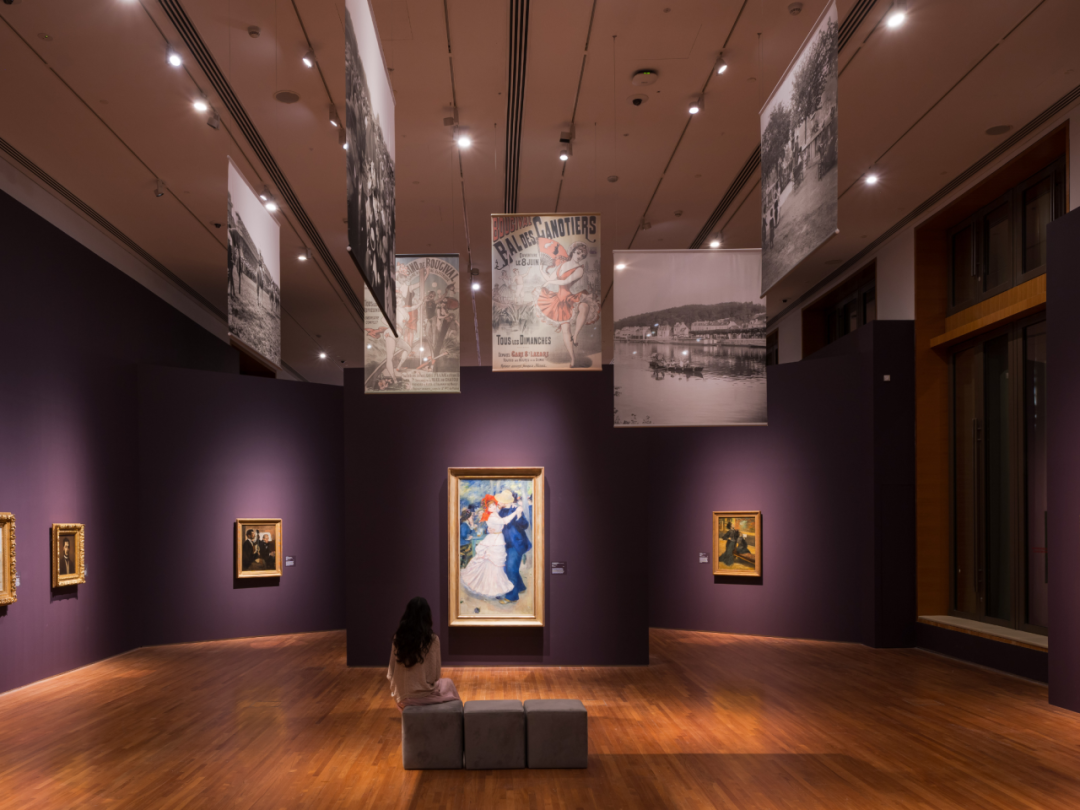 19 世纪中叶巴黎历经巨变,印象派画家捕捉下这一进程,社交生活随新娱乐场所兴起而转变,雷诺阿 1883 年《布吉瓦尔之舞》描绘了露天咖啡馆的浪漫华尔兹场景,细节中亦暗藏城市场景的粗糙面。